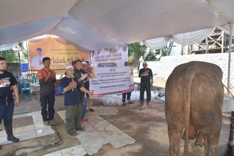 JABARINSIDE.COM | Sukabumi, 7 Juni 2025 – Sapi kurban milik Presiden Republik Indonesia, Jenderal (Purn) Prabowo Subianto, dan Kapolri Jenderal Polisi Listyo Sigit Prabowo, disembelih pada Sabtu (7/6/2025), bertepatan dengan H+1 Idul Adha 1446 H, di Pondok Pesantren Modern Assalam Putri, Warungkiara, Kabupaten Sukabumi.