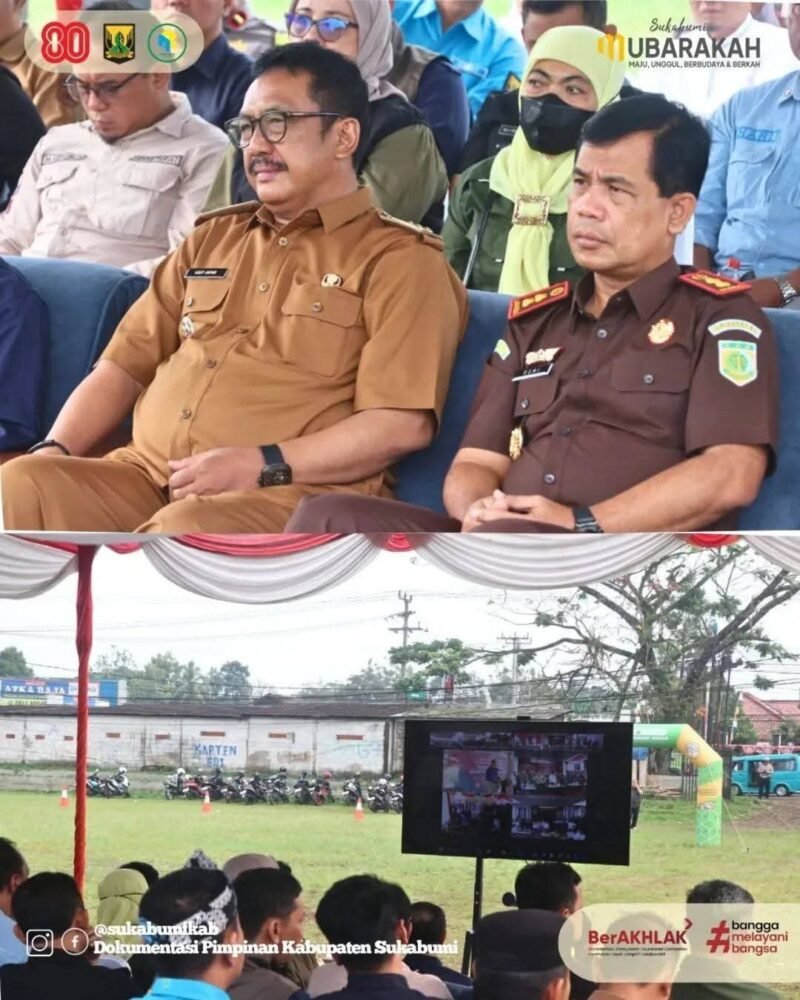 JABARINSIDE.COM | SUKABUMI – Bupati Sukabumi, H. Asep Japar, bersama Kepala Kejaksaan Negeri (Kejari) Kabupaten Sukabumi, Romiyasi, SH., MH., serta Sekretaris Daerah Kabupaten Sukabumi, H. Ade Suryaman, menghadiri sekaligus meninjau Gelar Pasar Murah yang digelar dalam rangka memperingati Hari Ulang Tahun (HUT) Kemerdekaan Republik Indonesia ke-80 dan Hari Lahir Kejaksaan ke-80.
