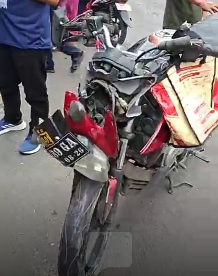 ‎Kecelakaan Beruntun Melibatkan  3 Pemotor di Depan Stasiun Cibadak Diduga Ugal-ugalan
