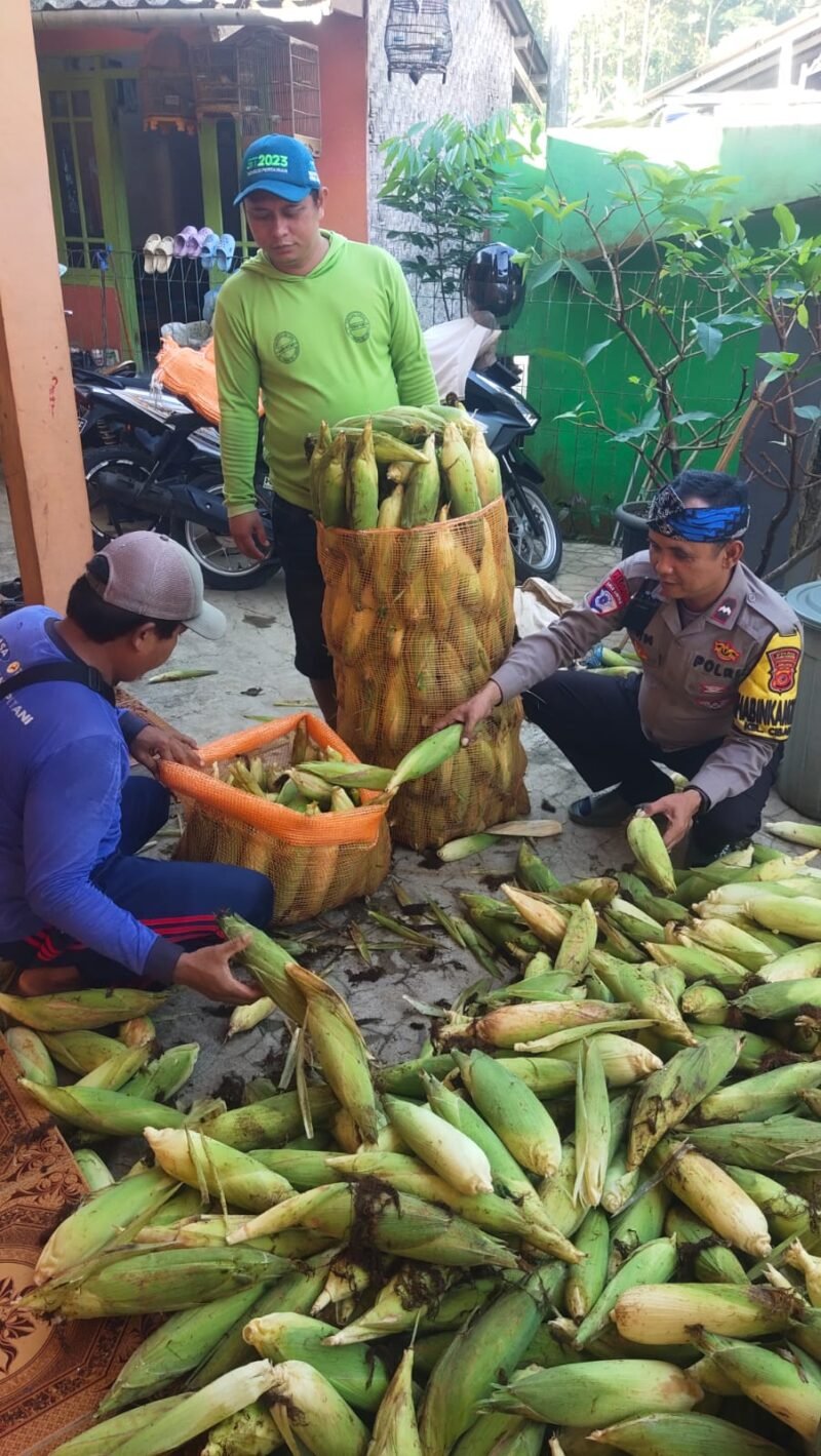 ‎Polsek Cibadak Dampingi Kelompok Tani dalam Pemanenan Jagung di Sekarwangi