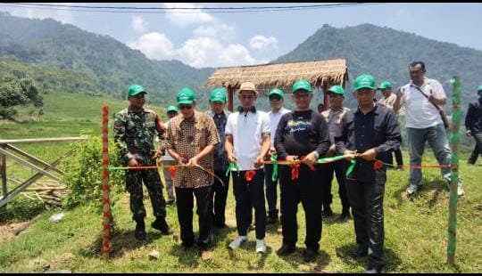 ‎Acara pembukaan ditandai dengan pengguntingan pita dan penanaman pohon pinus secara simbolis oleh Komar, Kepala Desa Sukamulya.