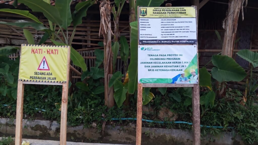 JABARINSIDE.COM | Sukabumi – Pemerintah Kabupaten Sukabumi melalui Dinas Perumahan dan Kawasan Permukiman (Disperkim) melaksanakan program pembangunan infrastruktur di Desa Tanjungsari, Kecamatan Jampangtengah, Kabupaten Sukabumi. Program tersebut disambut antusias oleh pemerintah desa dan warga setempat.