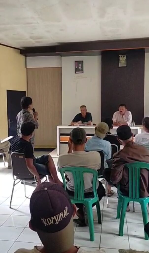 Jabarinside.com |Sukabumi — Puluhan warga Desa Tenjojaya, Kecamatan Cibadak, Kabupaten Sukabumi, mendatangi kantor desa untuk meminta kejelasan terkait aktivitas yang dilakukan PT Bukerindo (atau disebut juga PT Bunga Rindu) di lahan yang status hukumnya masih belum jelas. Warga menilai, sejumlah tanaman mereka rusak akibat aktivitas perusahaan tersebut.