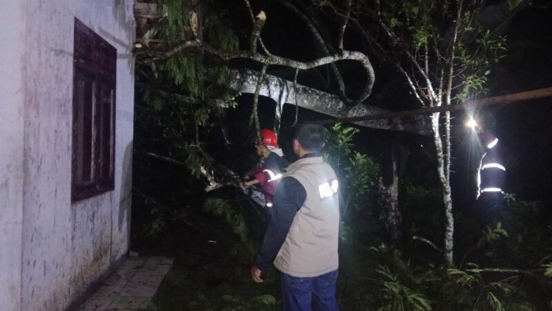 “Akibat tertimpa pohon, sebagian rumah mengalami kerusakan. Tidak ada korban jiwa, namun penghuni rumah yang berjumlah enam orang terpaksa mengungsi sementara ke rumah tetangga karena kondisi rumah bocor,” ujar Andi Herdiyani dalam laporannya, Minggu malam.