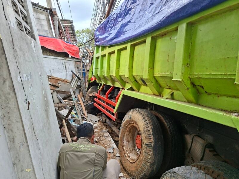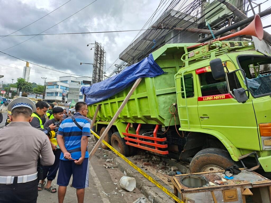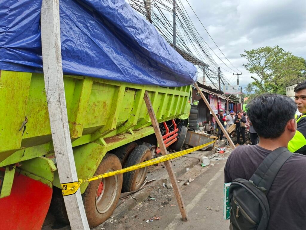 JABARINSIDE.COM | SUKABUMI – Sebuah truk bermuatan tanah untuk proyek pembangunan Tol Bocimi mengalami insiden rem blong di kawasan Simpang Tiga Cibadak, arah Pelabuhan Ratu–Bogor, Kabupaten Sukabumi, Selasa (4/11/2025) siang.