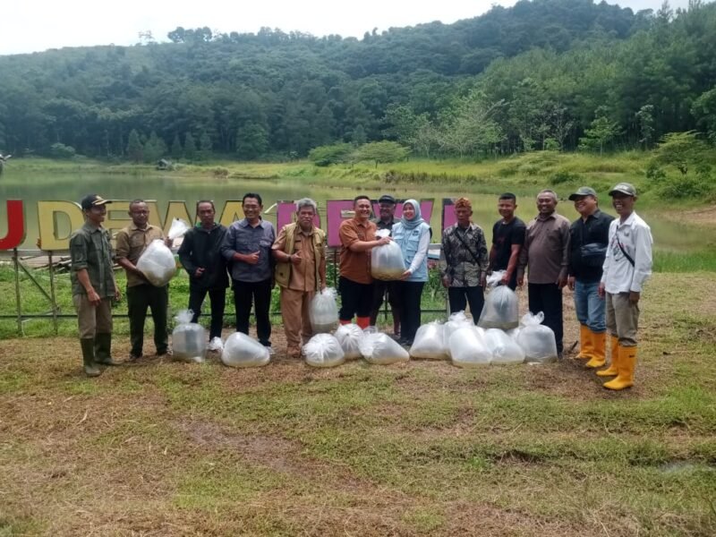 JABARINSIDE.COM | SUKABUMI – Dalam upaya menjaga kelestarian ekosistem perairan dan meningkatkan populasi ikan di wilayah perairan umum, Dinas Perikanan Kabupaten Sukabumi bersinergi dengan Perum Perhutani, Camat Jampangtengah, serta Pemerintah Desa Tanjungsari melaksanakan kegiatan restocking ribuan bibit ikan di wisata alam Situ Dewa Dewi Cipiit, Desa Tanjungsari, Kecamatan Jampangtengah, pada Selasa (11/11/2025).
