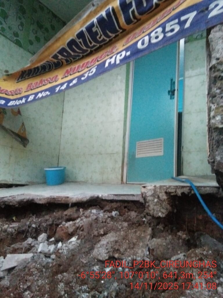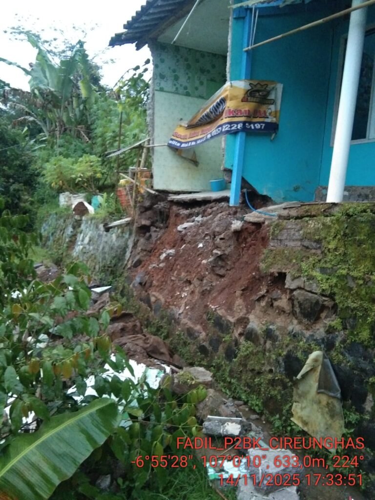 Kamis (13/11) pukul 15.00 WIB, hujan deras mengakibatkan dapur rumah warga bernama Nata ambruk di Kampung Cileungsing. Penghuni mengungsi ke rumah keluarga.