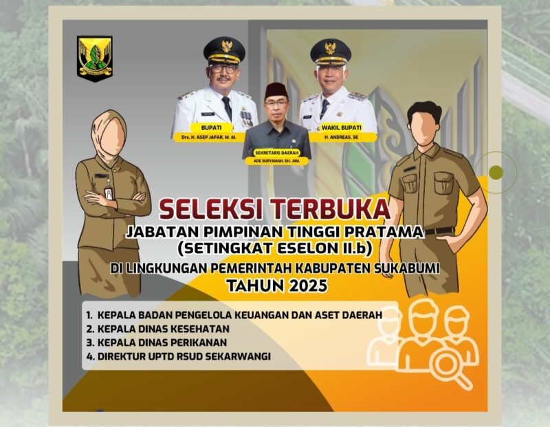 JABARINSIDE.COM|Sukabumi-Seleksi terbuka JPT Pratama menjadi salah satu upaya Pemerintah Kabupaten Sukabumi untuk memastikan pengisian jabatan strategis dilakukan secara objektif, kompetitif, dan sesuai ketentuan merit system yang berlaku melalui Panitia Seleksi Terbuka Jabatan Pimpinan Tinggi (JPT) Pratama resmi merilis dua tahapan penting seleksi, yakni Hasil Seleksi Administrasi dan Hasil Rekam Jejak untuk empat formasi jabatan strategis yang dibuka tahun 2025