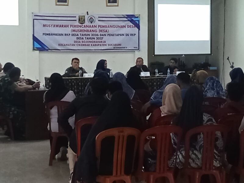 JABARISIDE.COM | Cikembar – Pemerintah Desa (Pemdes) Bojongraharja, Kecamatan Cikembar, Kabupaten Sukabumi, menggelar Musyawarah Rencana Pembangunan Desa (Musrenbangdes) di aula balai desa pada Senin (17/11/2025). Agenda tersebut digelar dalam rangka membahas penetapan Rencana Kerja Pemerintah (RKP) Desa tahun 2026 serta penetapan Daftar Usulan (DU) RKP tahun 2027.