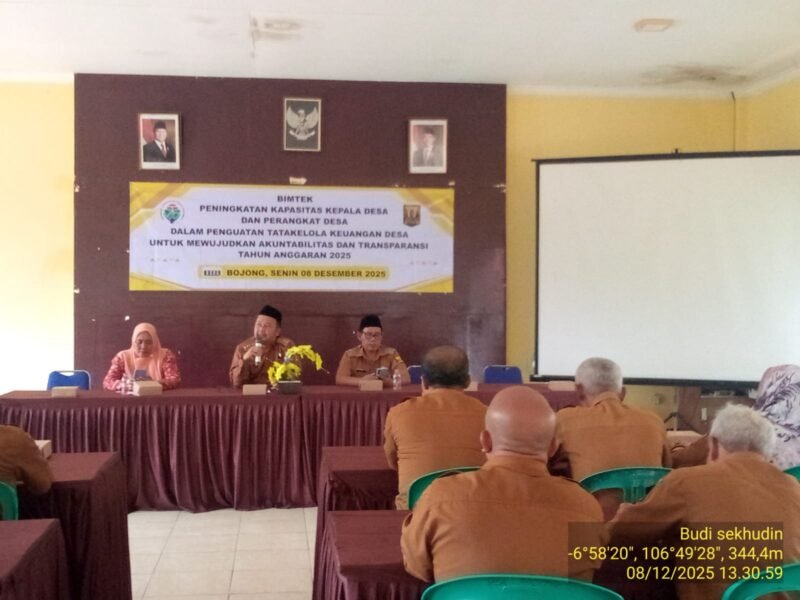 JABARINSIDE.COM | SUKABUMI – Camat Cikembar, Asep Rusli Rusmawijaya, menghadiri kegiatan Bimbingan Teknis (Bimtek) peningkatan kapasitas kepala desa dan perangkat desa dalam penguatan tata kelola keuangan desa guna mewujudkan akuntabilitas dan transparansi Tahun Anggaran 2025. Kegiatan tersebut digelar di Desa Bojong, Kecamatan Cikembar, Kabupaten Sukabumi, Senin (08/12/2025).