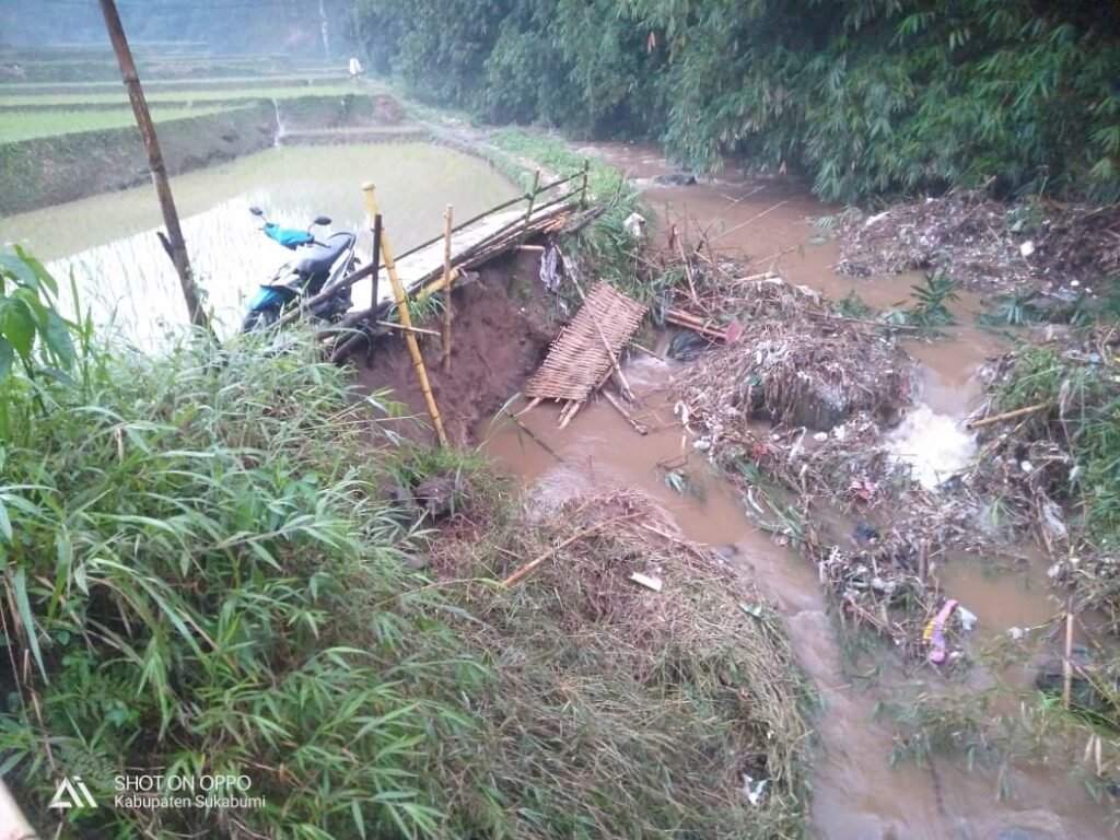 Sementara itu, longsor juga terjadi di Kecamatan Cisaat pada Jumat (5/12/2025) sekitar pukul 16.30 WIB. Cuaca ekstrem dan hujan deras mengakibatkan dinding penahan tanah (TPT) saluran irigasi Cikupa longsor serta mengancam jembatan penghubung antara RT 27 dan RT 28 RW 07, Desa Padaasih. Longsoran memiliki tinggi sekitar 7 meter dengan panjang TPT ±20 meter dan lebar 1,5 meter. Kondisi tersebut berpotensi memutus akses jalan warga akibat derasnya aliran Sungai Cikupa.