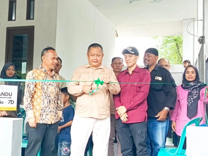 JABARINSIDE.COM|Sukabumi-Camat Lembursitu Yudi Sutriana melaksanakan gunting pita peresmikan Posyandu Alamada 7D di Kp Saluyu Kelurahan Situmekar Kecamatan Lembursitu Kota Sukabumi