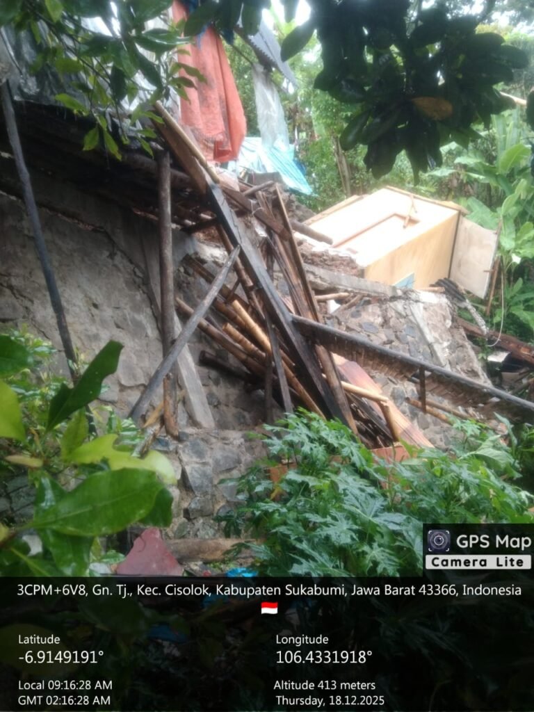 JABATINSIDE.COM | SUKABUMI — Hujan dengan intensitas tinggi yang mengguyur Kabupaten Sukabumi sejak Rabu malam hingga Kamis dini hari (18/12/2025) mengakibatkan sejumlah bencana alam, mulai dari tanah longsor, banjir, pergerakan tanah hingga pohon tumbang di beberapa wilayah.