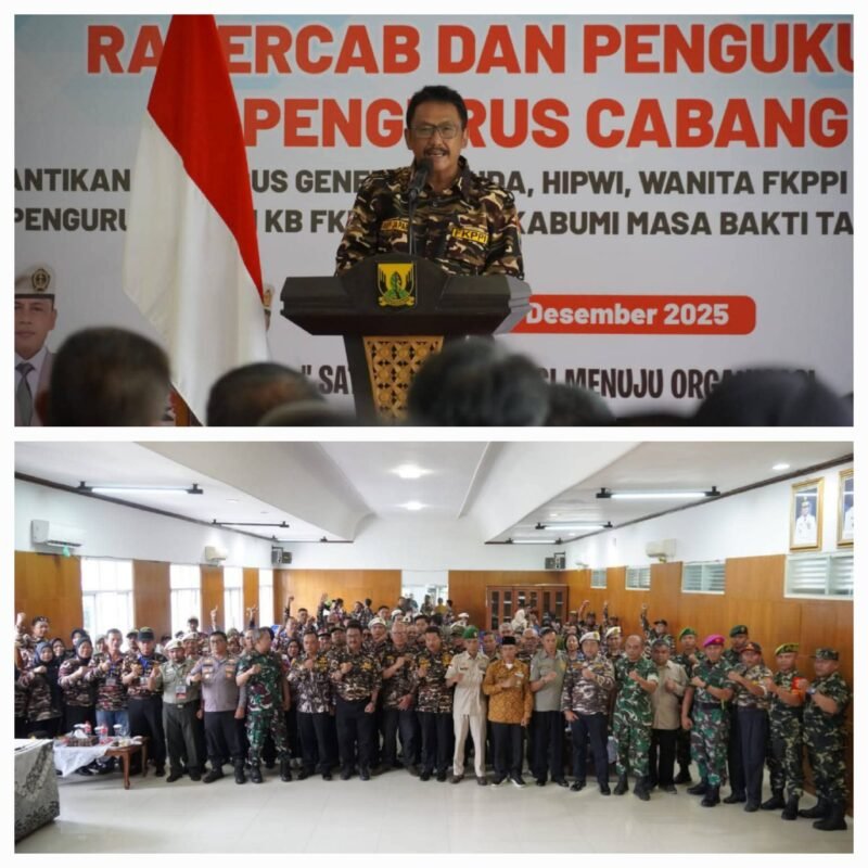 JABARINSIDE.COM|Sukabumi-Bupati Sukabumi H.Asep Japar Menghadiri Rapat Kerja Cabang dan Pelantikan Pengurus Rayon serta Organisasi Pendukung (Generasi Muda, HIPWI dan Wanita FKPPI) KB FKPPI Kabupaten Sukabumi. Acara berlangsung di Aula PKK Pendopo Sukabumi,Minggu, (21/12/25).