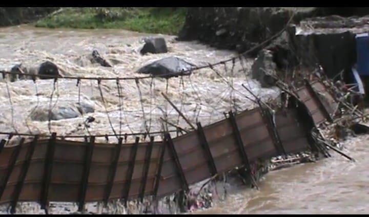 SUKABUMI — Kepala Desa Tanjungsari, Kecamatan Jampangtengah, Ilah Hablillah, mengimbau masyarakat agar tetap berhati-hati pasca rusaknya dua jembatan penghubung antara Desa Tanjungsari, Kecamatan Jampangtengah, dengan Desa Sirnaresmi, Kecamatan Gunungguruh.