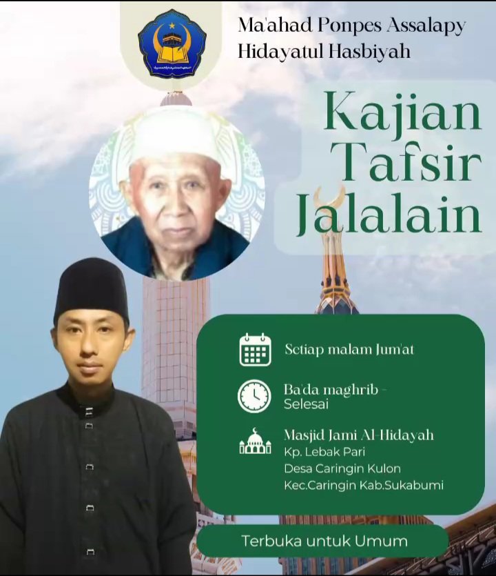 JABARINSIDE.COM|Sukabumi-Ma’ahad Ponpes Assalapy Hidayatul Hasbiyah mengadakan kajian Tafsir Jalalain setiap malam jumat ba’da magrid di Mesji Jami Al Hidayah di Kampung Lebak Pari Desa Caringin Kulon Kecamata Caringin Kabupaten Sukabumi terbuka untuk umum yang disampaikan ustadz Suhaepi SHI.Kamis 08-01-2026