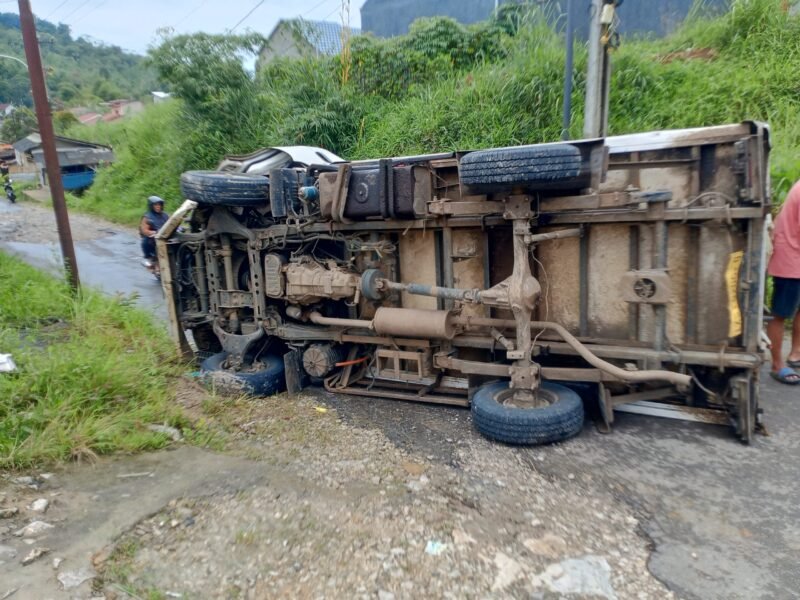 JABARINSIDE.COM | SUKABUMI – Sebuah mobil box bermuatan es krim terbalik di Jalan Tenjojaya, tepatnya di depan Perum Bolo 2, Kampung Bantar Muncang, Desa Sekarwangi, Kecamatan Cibadak, Kabupaten Sukabumi, Jawa Barat, Jumat (28/2/2026) sekitar pukul 09.00 WIB.