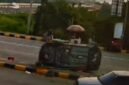 Mobil Terbalik di Exit Tol Parungkuda, Diduga Hilang Kendali Saat Keluar Tol