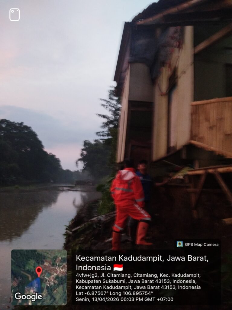 JABARINSIDE.COM | Sukabumi – Hujan deras yang mengguyur wilayah Kecamatan Kadudampit, Kabupaten Sukabumi, menyebabkan kerusakan pada satu unit rumah warga pada Senin (13/4/2026) sekitar pukul 16.00 WIB.
