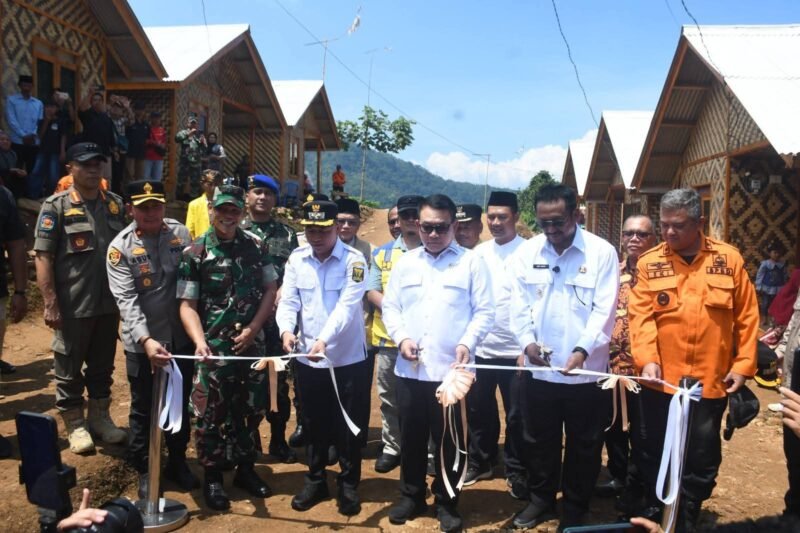 JABARINSIDE.COM | Bupati Sukabumi H Asep Japar bersama Wakil Bupati H Andreas mendampingi kunjungan kerja Penasihat Khusus Presiden Bidang Pertahanan Nasional, Jenderal TNI (Purn.) Prof. Dr. H. Dudung Abdurachman dalam peresmian hunian tetap (huntap) adaptif bencana di Desa Sukarame, Kecamatan Cisolok, Kabupaten Sukabumi, Kamis (16/4/2026).