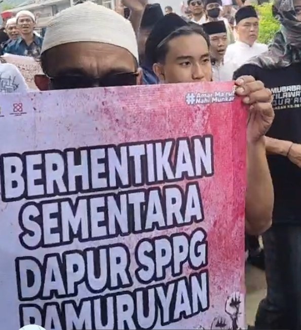 Sejumlah massa mendatangi lokasi dapur dan menuntut kejelasan atas dugaan sengketa lahan yang menyeret proyek tersebut. Warga meminta agar operasional dihentikan sementara hingga ada kepastian hukum yang jelas.