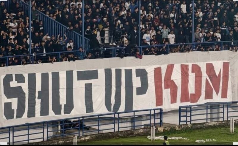 Di tengah kebuntuan di lapangan, tribun utara “memecah kebisuan” dengan membentangkan spanduk bertuliskan “Shut Up KDM”. Dalam hitungan jam, pesan itu menjalar dari stadion ke jagat media sosial, memantik perdebatan yang jauh lebih panas dibanding jalannya pertandingan.