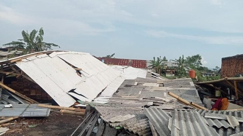 JABARINSIDE.COM | SUKABUMI – Hujan deras disertai angin kencang melanda wilayah Desa Babakan, Kecamatan Cisaat, Kabupaten Sukabumi, pada Senin (27/4/2026) sekitar pukul 15.08 WIB. Peristiwa ini menyebabkan sejumlah bangunan warga mengalami kerusakan, termasuk satu gudang mebel milik warga yang dilaporkan rusak berat.